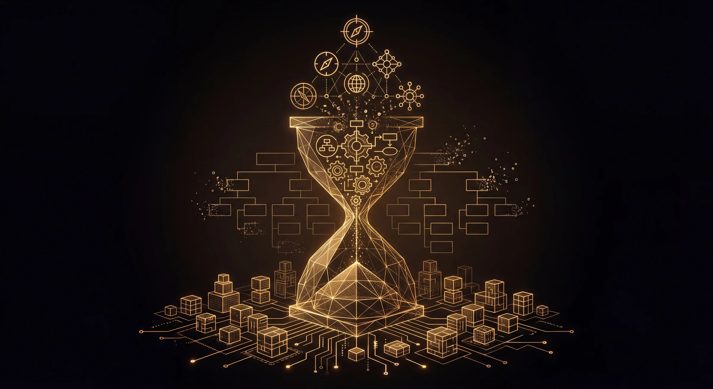 } What replaces the traditional organisation is not its absence. It is a different organisational form: an hourglass structure.